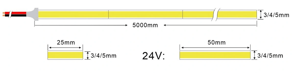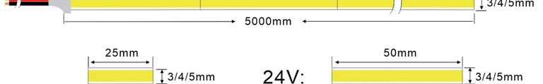 Flexible Striplight COB 05mm 480leds/m 5W CRI 90/95/98