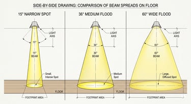 A beam angle is the spread of light from a fixture. Choosing the correct angle is the difference between a flat, uninspired room and a high-end architectural space. At Right Led Lighting, we provide precision-engineered lenses that ensure a clean "cut-off" with no wasted light spill.